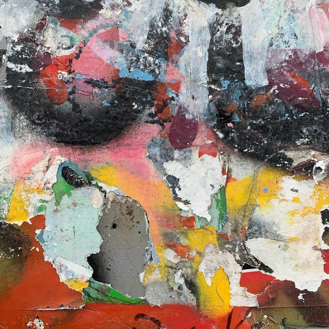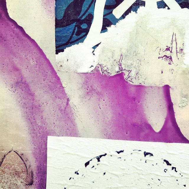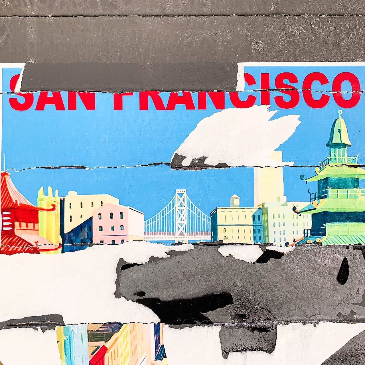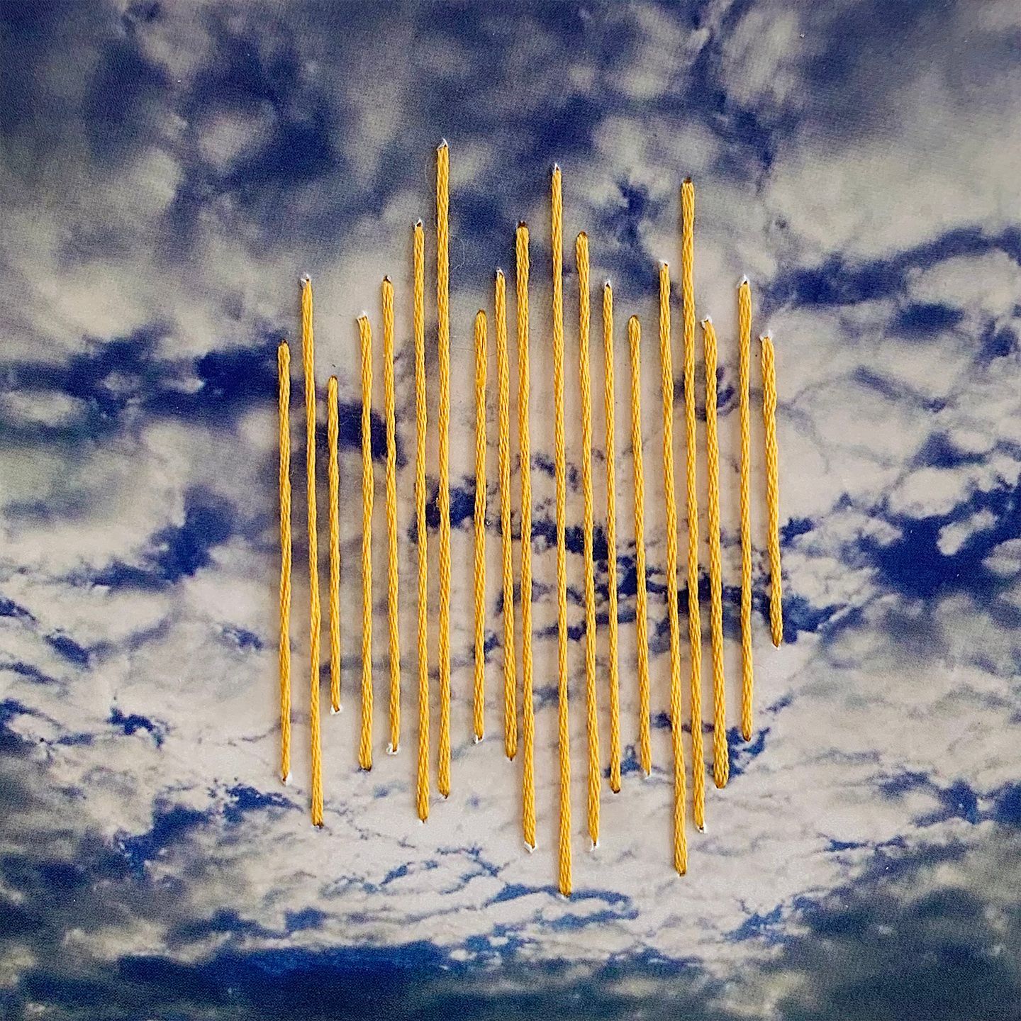 and graphic compositions with an added layer of hand-embroidery. The stitches mimic a lot of her illustrations and playful doodles she developed as a graphic designer and illustrator. The photography is from years of capturing torn graphics, textures and nature shots; these printed photos become the first layer for her final