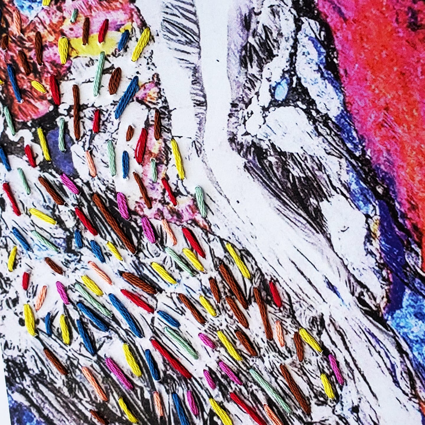 Though rarely obvious in her final (and typically vibrant) pieces of art, Cheri explores areas of her brain that are prone to depression and perfectionism. Letting go and using art as a catharsis is organic and therapeutic with the process of stitching being a vital form of therapy and meditation.