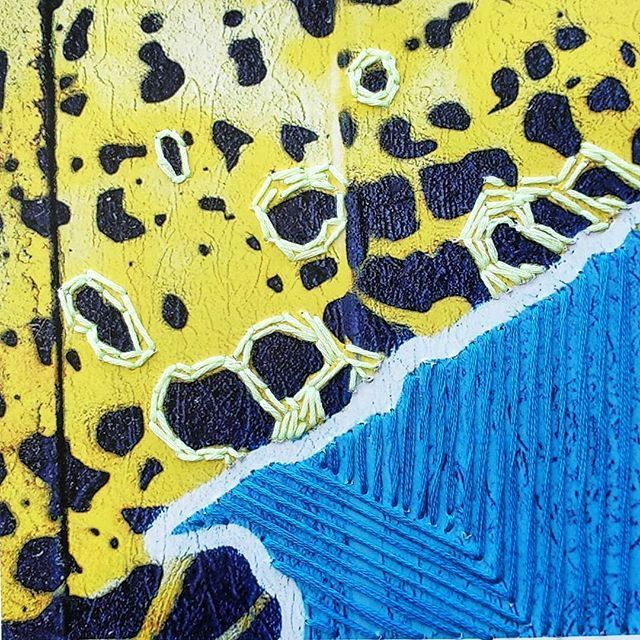 Embroidered photography artwork refers to a form of mixed media art where a photograph is combined with embroidery. I begin by taking photographs of odd graphics, textures, graffiti and anything in nature. Using a needle and thread, I add details onto the surface of the image. The embroidery can range from subtle highlights to bold contrasting color. I love the added texture and dimension, creating an unexpected surprise when you look closer.