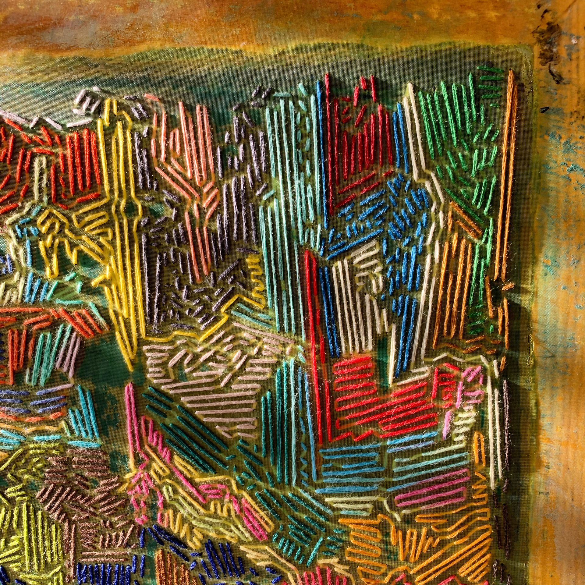 Though rarely obvious in her final (and typically vibrant) pieces of art, Cheri explores areas of her brain that are prone to depression and perfectionism. Letting go and using art as a catharsis is organic and therapeutic with the process of stitching being a vital form of therapy and meditation.